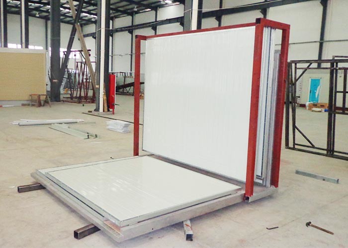 Τα πάνελ τοίχου είναι κατασκευασμένα από πάνελ σάντουιτς EPS 50mm με πυκνότητα 10kg. Όλα τα πάνελ είναι στερεωμένα στο εργοστάσιο και συνδέονται με πάνελ οροφής. Το πάχος του χάλυβα για το πάνελ είναι 0,35mm εξωτερικά και 0,35mm εσωτερικά.