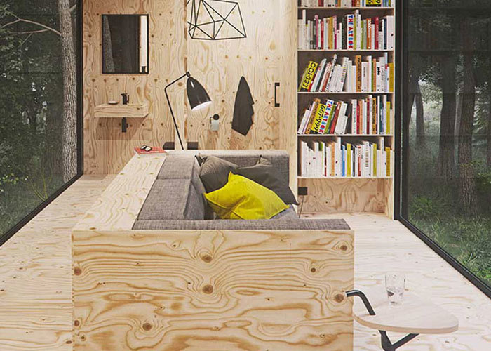 Moonglow Cabin offers a layout designed for adaptability across different settings. With a footprint of 3 by 7 meters, the structure makes use of vertical space to separate living and resting areas.